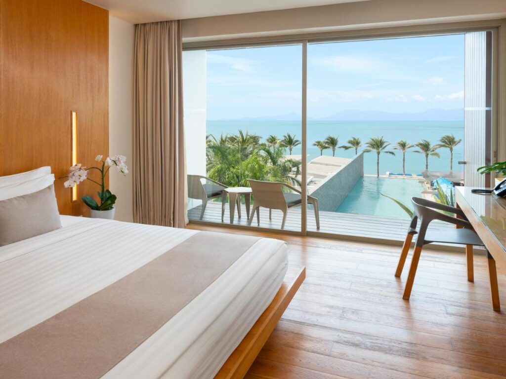 Nestled directly on the pristine shores of Maenam Beach, Explorar Koh Samui is your perfect adults-only (16+) retreat, offering unmatched relaxation and the finest culinary experiences. For those who want to combine work and leisure, the resort’s state-of-the-art co-working space is open 24/7. It offers high-speed internet, printers, comfortable seating, private meeting rooms, complimentary coffee and stunning views.