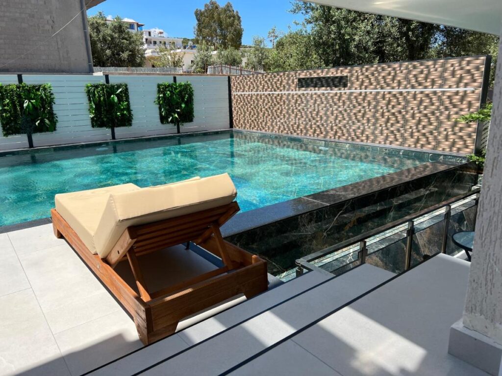 The hotel is located in a quiet neighborhood of Ksamil and offers free access to its fantastic beach club, 5 minutes’ walk away. The rooms are spacious, modern, and well-equipped with everything you need for a comfortable stay. The rooftop bar and pool is a cool place to end the day and enjoy a drink while watching the sunset.